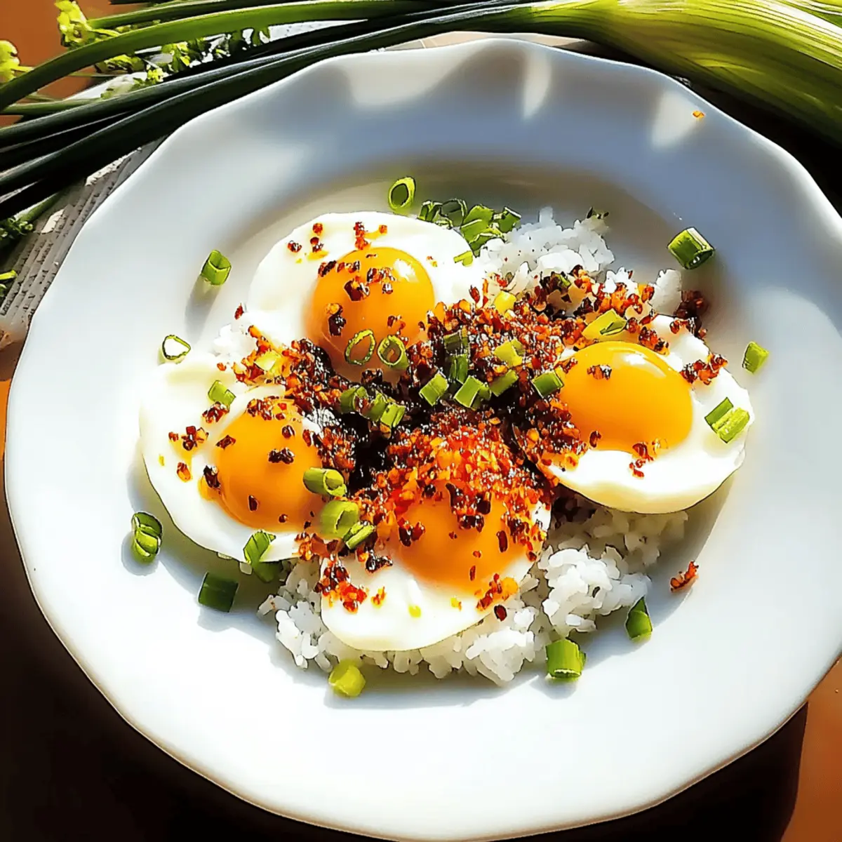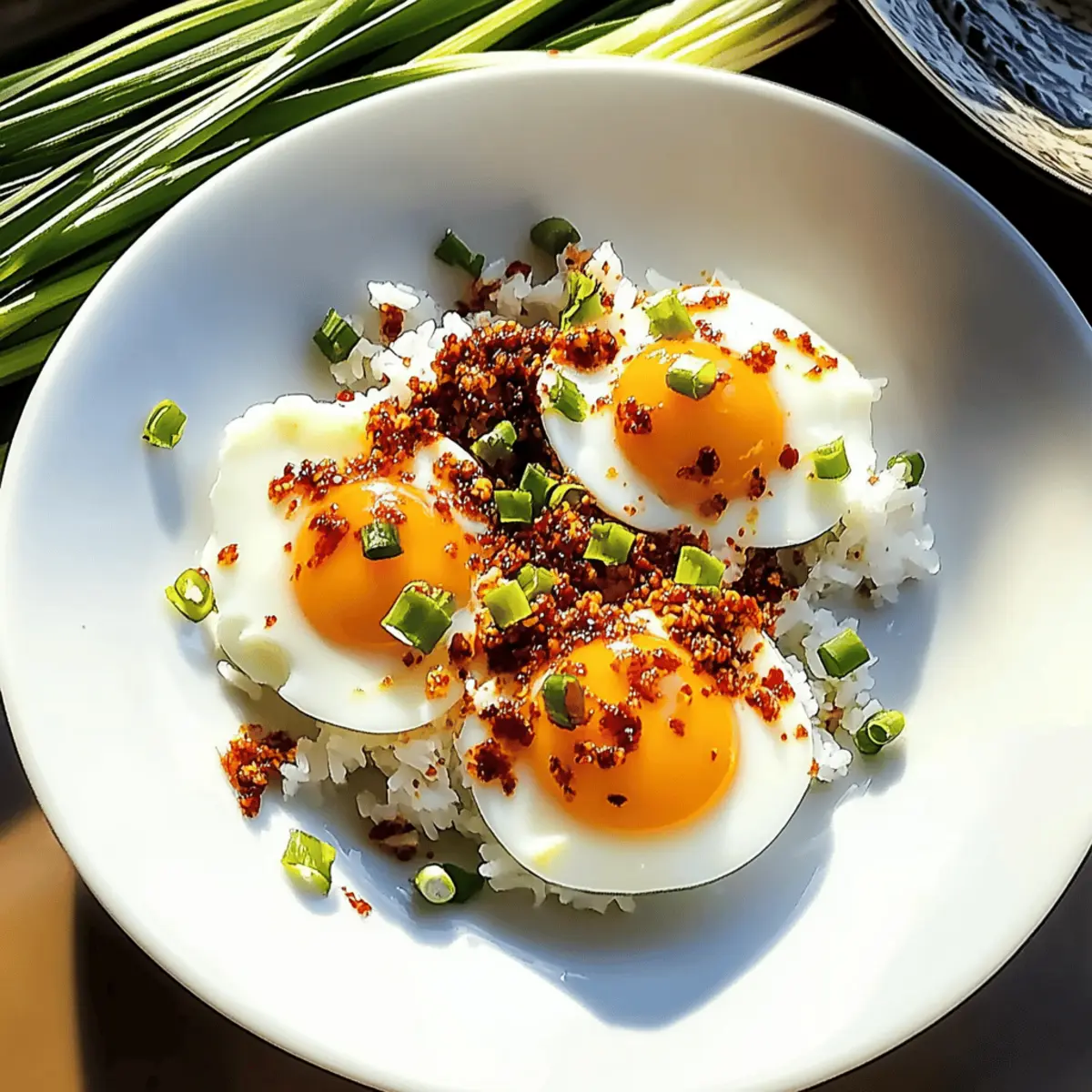 Quick preparation: With a few simple steps, you can have a nourishing breakfast on the table in no time. Bold flavors: The combination of sesame oil and chili flakes creates a savory explosion that will wake up your taste buds. Customizable delight: Add your favorite ingredients like veggies or various sauces for a personal touch. Comforting base: Served over warm rice, each bite is both satisfying and filling. Whether you’re transitioning from fast food or just looking for something different, these eggs will surely become a breakfast favorite! If you enjoy the vibrant flavors of Asian cuisine, you might also appreciate our Singaporean Chili Crab or get inspired with ideas from our Chili Beef Discover recipe!