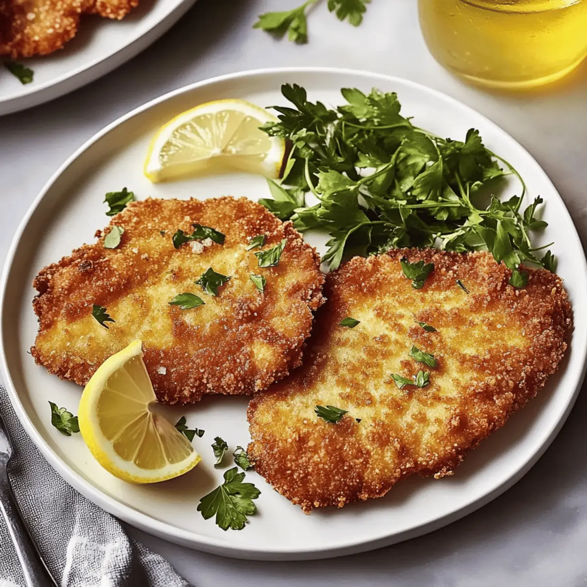 Finally, garnish your Crispy Chicken Schnitzel with freshly chopped parsley and serve it alongside lemon wedges. The lemon adds a refreshing tang that beautifully complements the rich flavors of the schnitzel. Now, plate your creation, and get ready to share this delightful dish on your family dinner table, where it’s sure to impress!