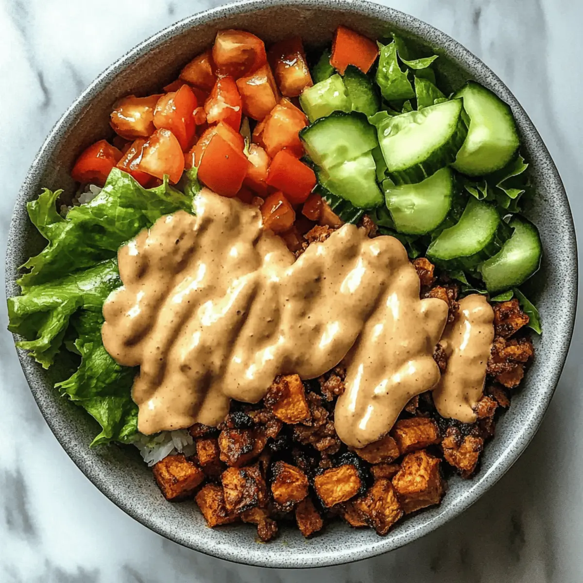 7. Drizzle the special sauce generously over assembled bowls and serve warm.