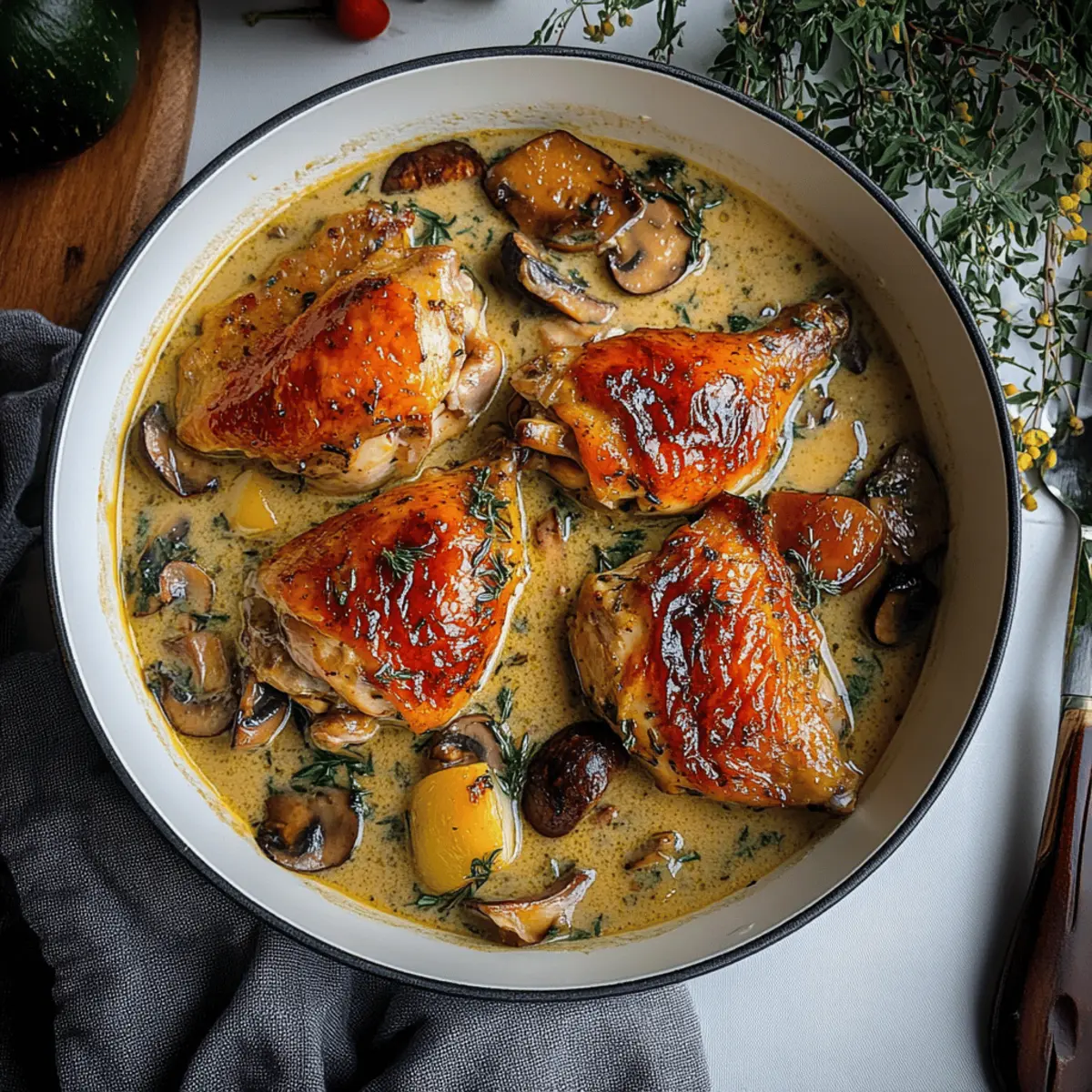 Savory Herb Roasted Chicken in Creamy White Wine Sauce Delight