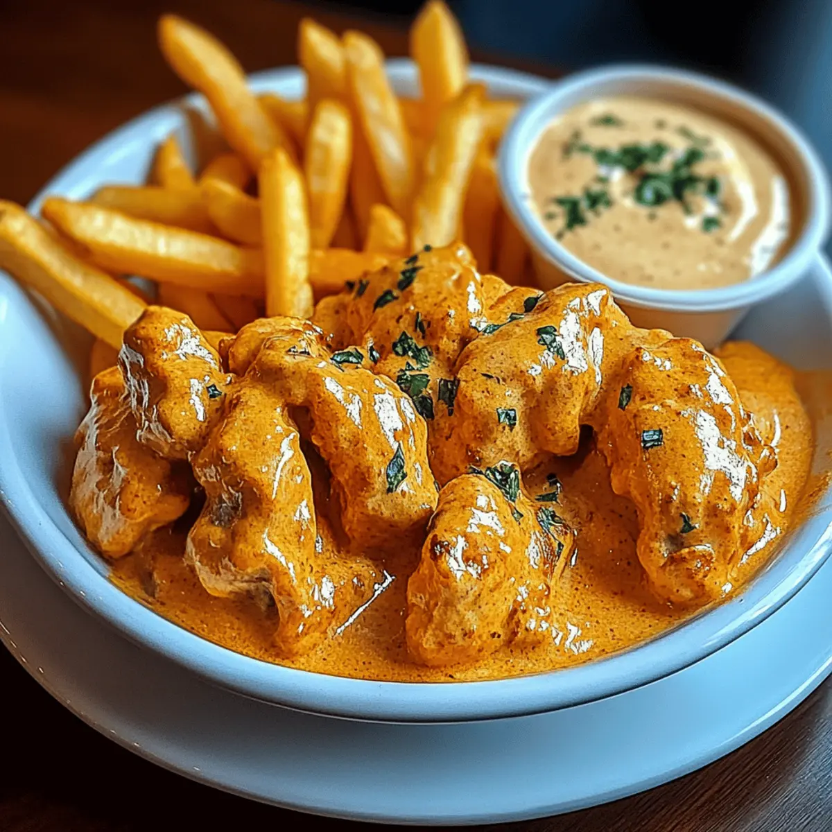 As I stood in my kitchen, the delightful aroma of marinated chicken began to weave its way through the air, mingling with the sizzle of garlic sauce bubbling on the stove. It was time for my favorite weeknight comfort food: Irresistible Butter Chicken with Garlic Sauce and Crispy Fries. Not only is this dish incredibly quick to prepare, making it perfect for busy evenings, but it also allows for personalized tweaks—whether you’re craving a gluten-free option or want to swap in paneer for a vegetarian twist. Each bite wraps you in warmth and crunch, making dinner feel like a cherished indulgence. Are you ready to elevate your meal game with this scrumptious recipe?