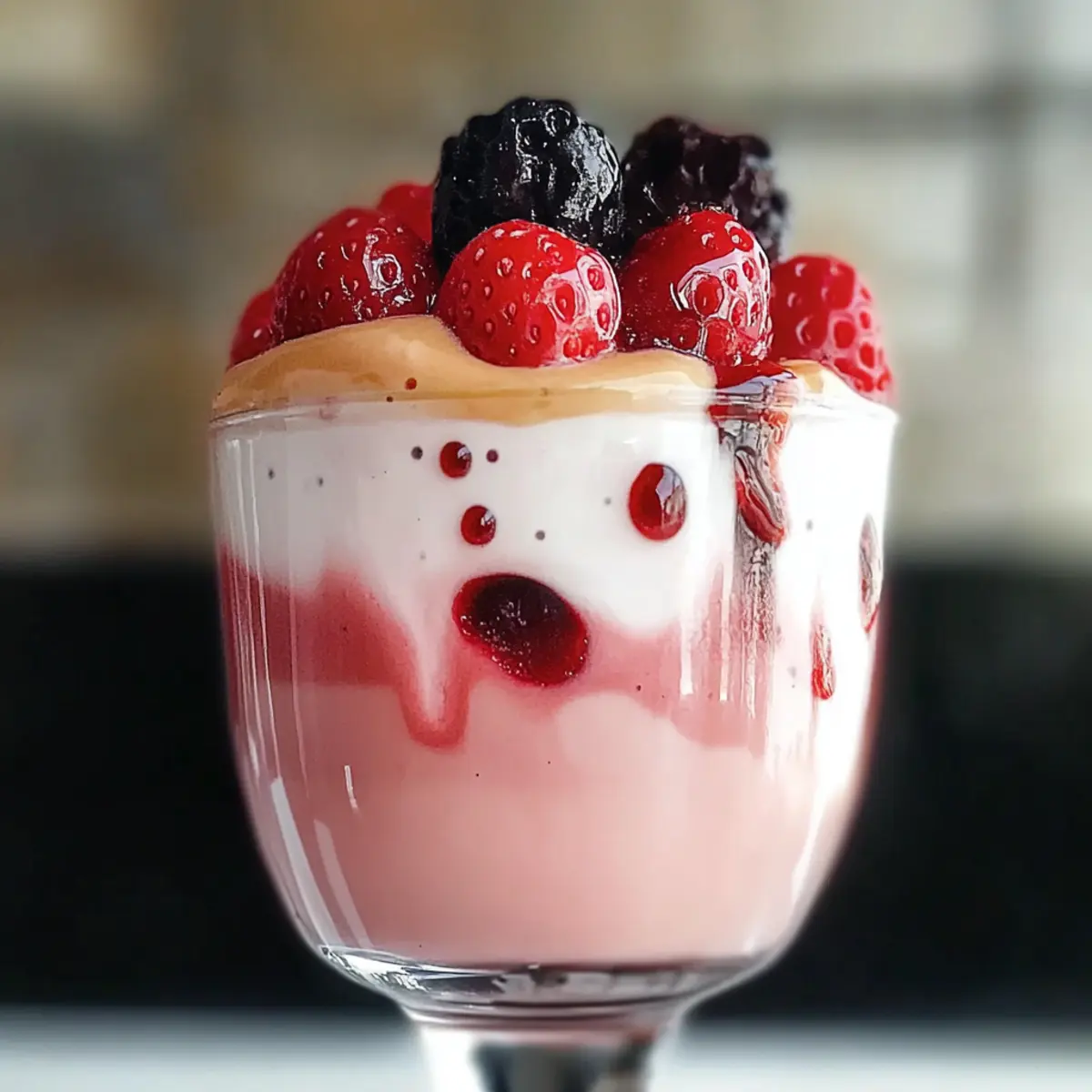 - Carefully spoon the frothy coffee mixture over the strawberry puree to create layers.