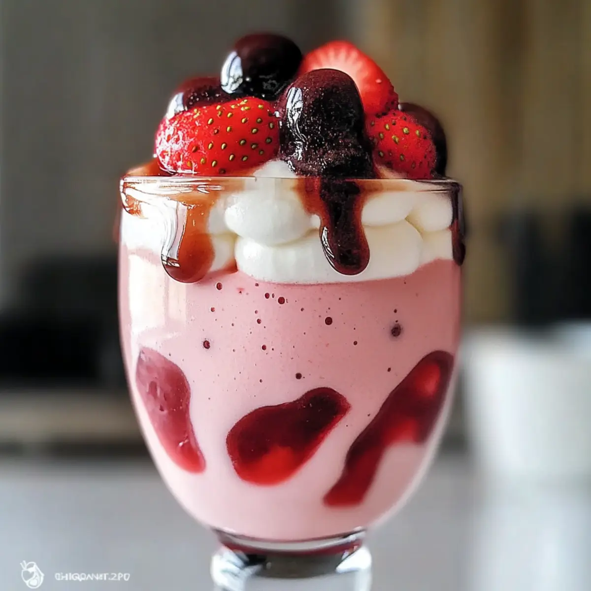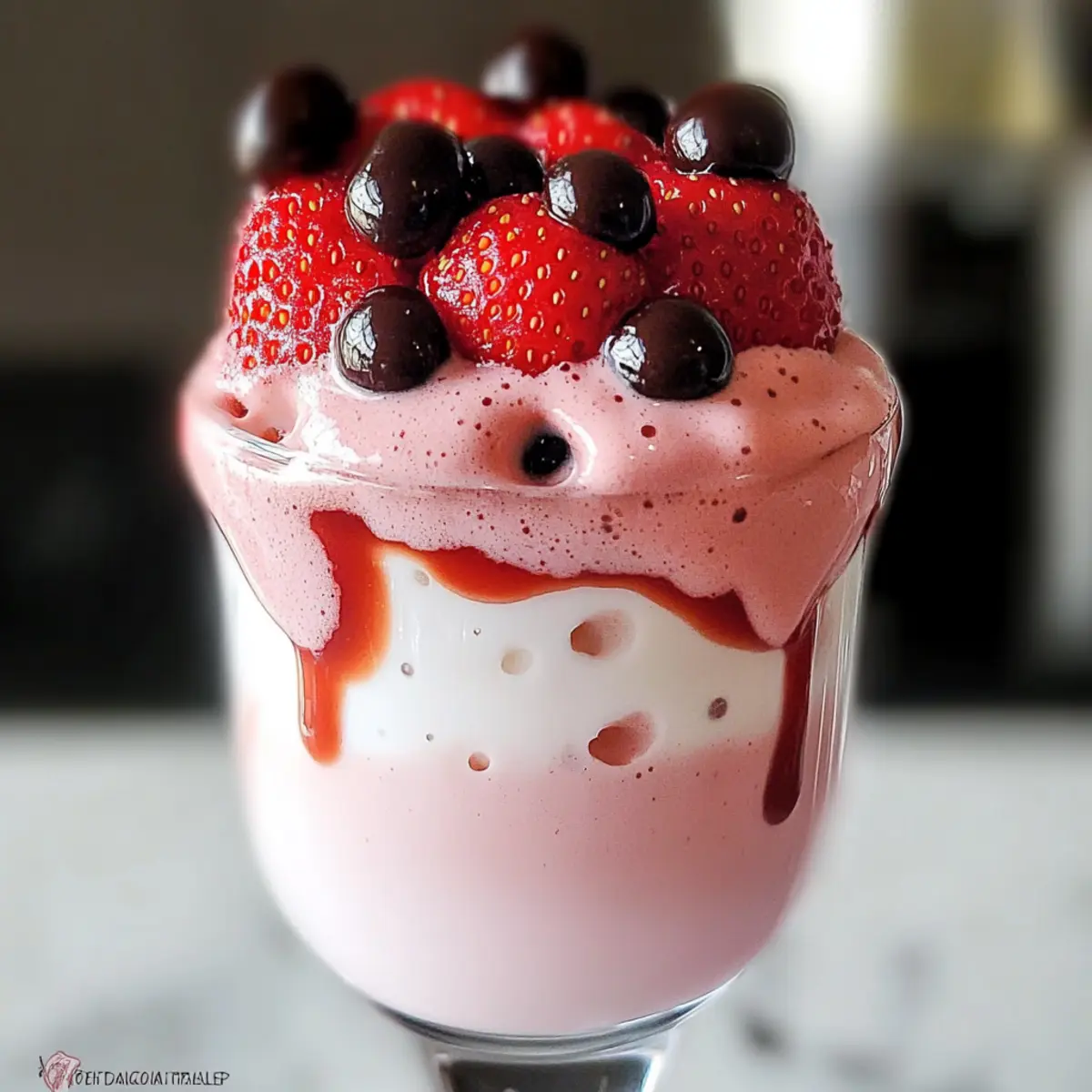- Optionally add whipped cream on top and drizzle with extra strawberry puree or cocoa powder for garnish.