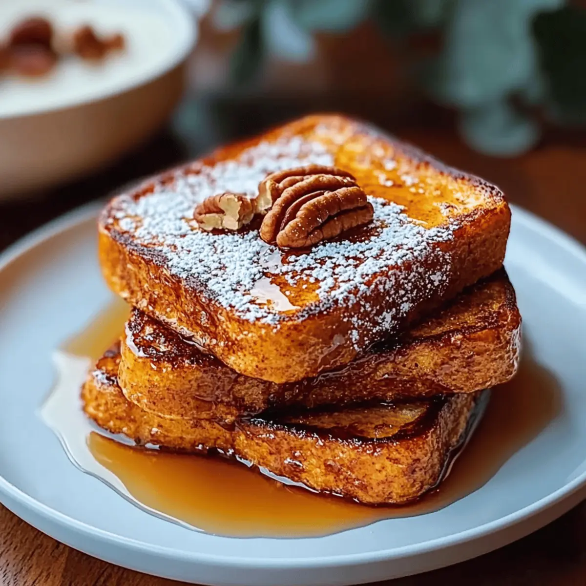 Enjoy a delightful Pumpkin French Toast Breakfast that captures the essence of autumn.