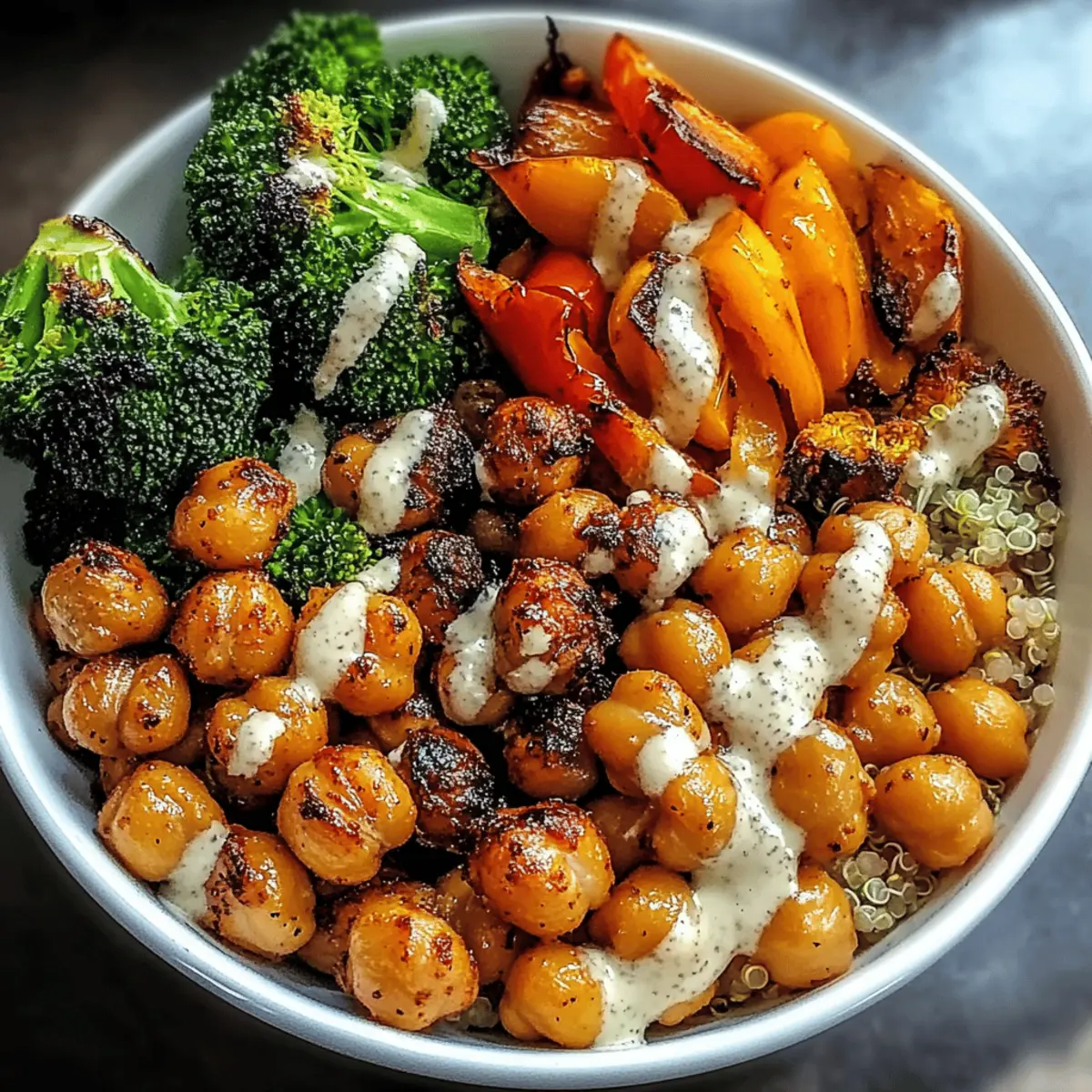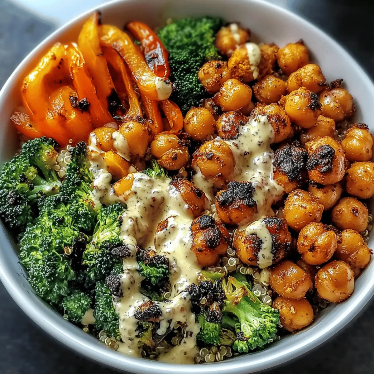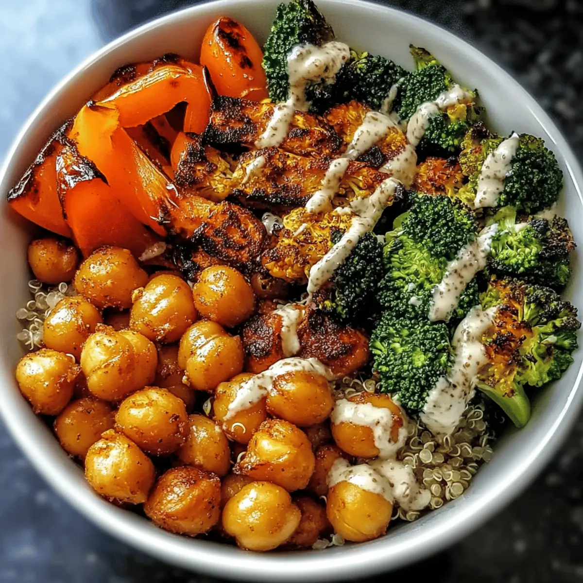 Simplicity reigns supreme with this recipe, as it requires minimal effort for a maximum flavor payoff. Flavorful roasted chickpeas and vibrant veggies are a match made in heaven, providing a delightful crunch and a burst of color in every bite. Versatile as they come, you can swap ingredients based on what you have on hand or to suit your taste buds, just like in our Stuffed Chicken Roasted recipe. Health-conscious eaters will appreciate the nutritious profile of this bowl, packed with fiber and protein, making it ideal for meal prep. Plus, crowd-pleasing appeal ensures everyone at the table will love this dish, whether served alongside classic hummus or as a delicious standalone meal.