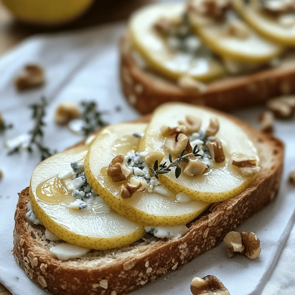 As I sat in my kitchen, the aroma of toasting walnut bread filled the air, transporting me straight to a quaint Mediterranean bistro. This recipe for Savory Pear and Gorgonzola Cheese on Toasted Walnut Bread is not only a feast for the senses but also a breeze to whip up. With gluten-free variations and easy adjustments for dietary preferences, it’s the perfect solution for those craving something special without the fuss of complicated cooking. The creamy Gorgonzola pairs beautifully with the sweet, juicy pears, creating a delightful contrast that’s both sophisticated and comforting. Whether you’re hosting a brunch or simply treating yourself, these toasts promise to impress your taste buds. Curious how to create this enchanting dish? Let’s dive into the steps together!