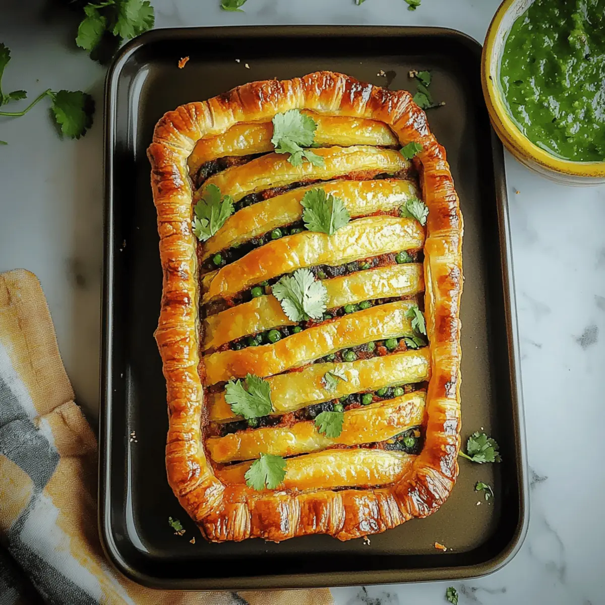 Begin by preheating your oven to 180℃ (350°F). While the oven heats up, line a baking tray with parchment paper. This ensures your Savory Samosa Tart doesn’t stick while baking. It’s a simple but crucial step that paves the way for the perfect golden crust later on.