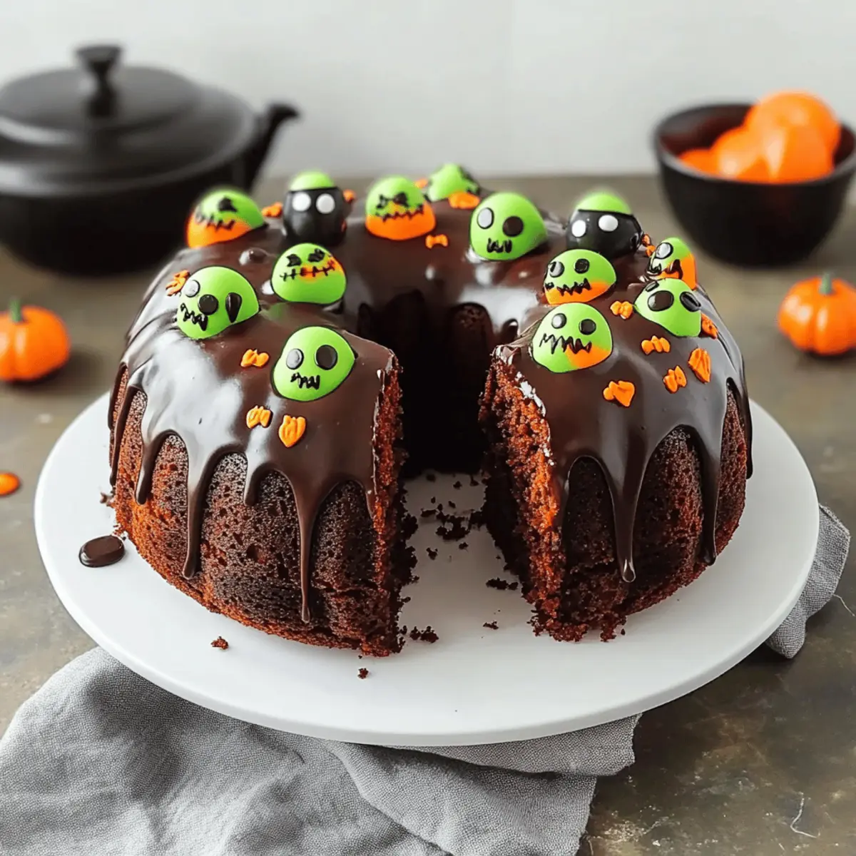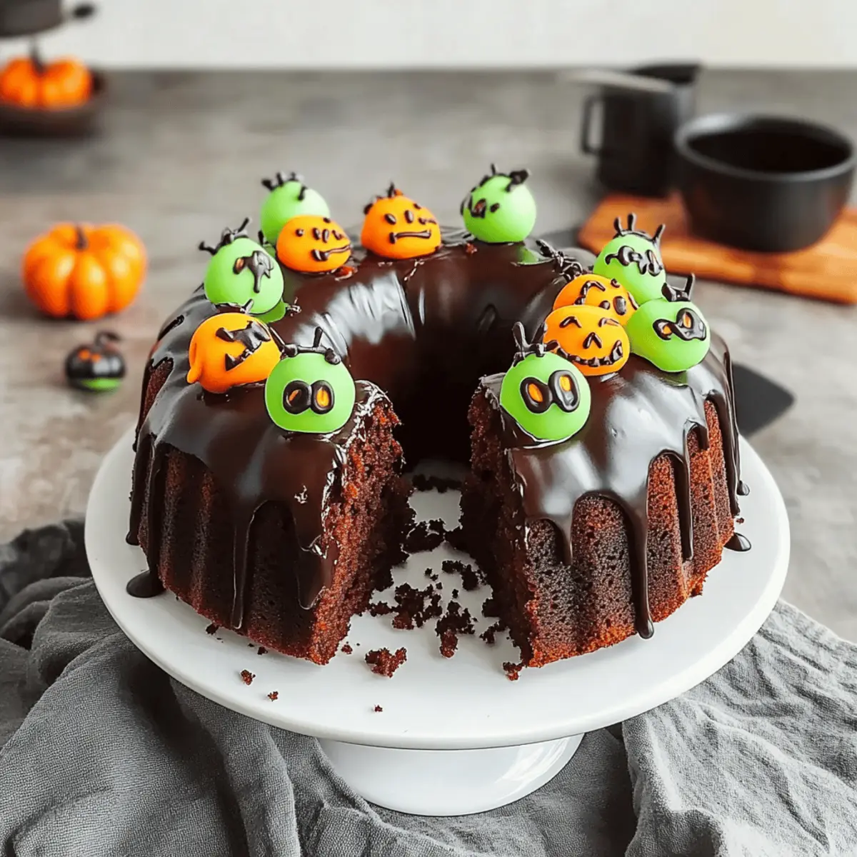 As the crisp autumn air sets in and the leaves begin to dance, it’s time to bring a touch of enchantment to your kitchen with my Spooktacular Halloween Cake! This Monster Halloween Bundt Cake is not only a showstopper, but it also offers everyone—a crowd-pleasing dessert with gluten-free and vegan variations to satisfy all your guests. Its easy-to-make recipe ensures that even the busiest of home chefs can whip up a deliciously moist chocolate treat that won’t last long at your next Halloween gathering. Imagine the smiles as you slice into this eye-catching cake, revealing its rich, chocolatey interior, perfect for celebrating the Halloween season. Curious about how to create this spooky delight? Let’s get baking!