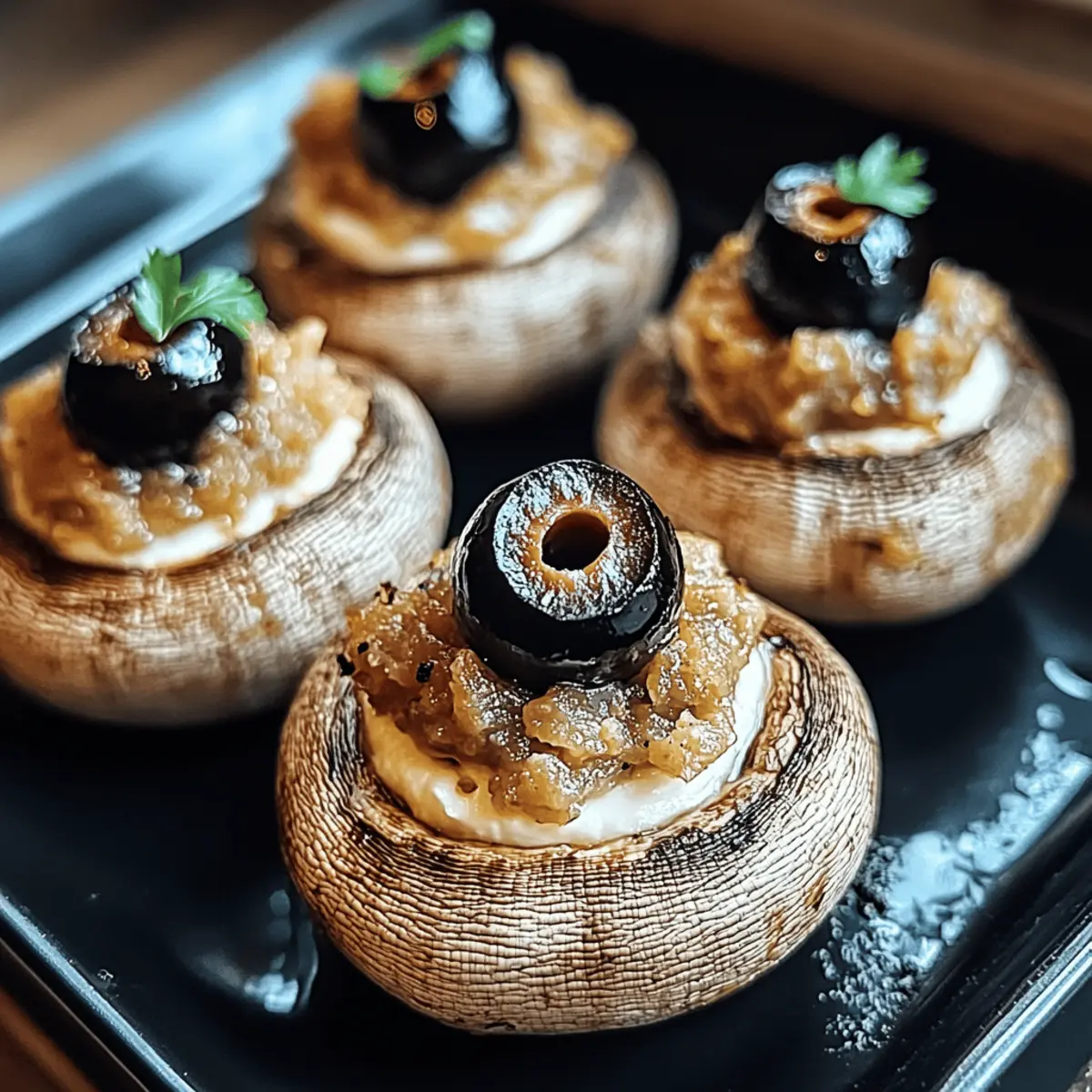 • Small Pitted Olives – These serve as creepy pupils, making your Stuffed Mushroom Eyeballs look truly eerie.