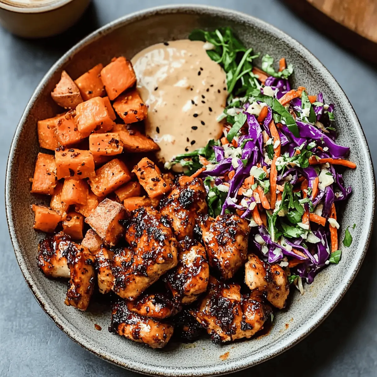 Satisfying Flavor Explosion: The spicy-sweet harmony of hot honey, smoky chicken, and roasted sweet potatoes creates a mouthwatering experience that tantalizes your taste buds.