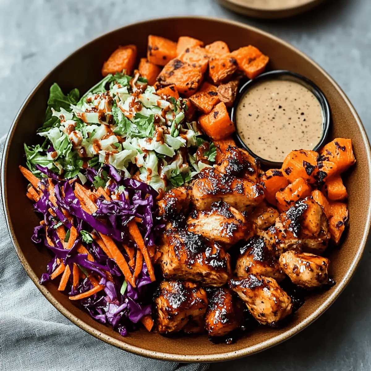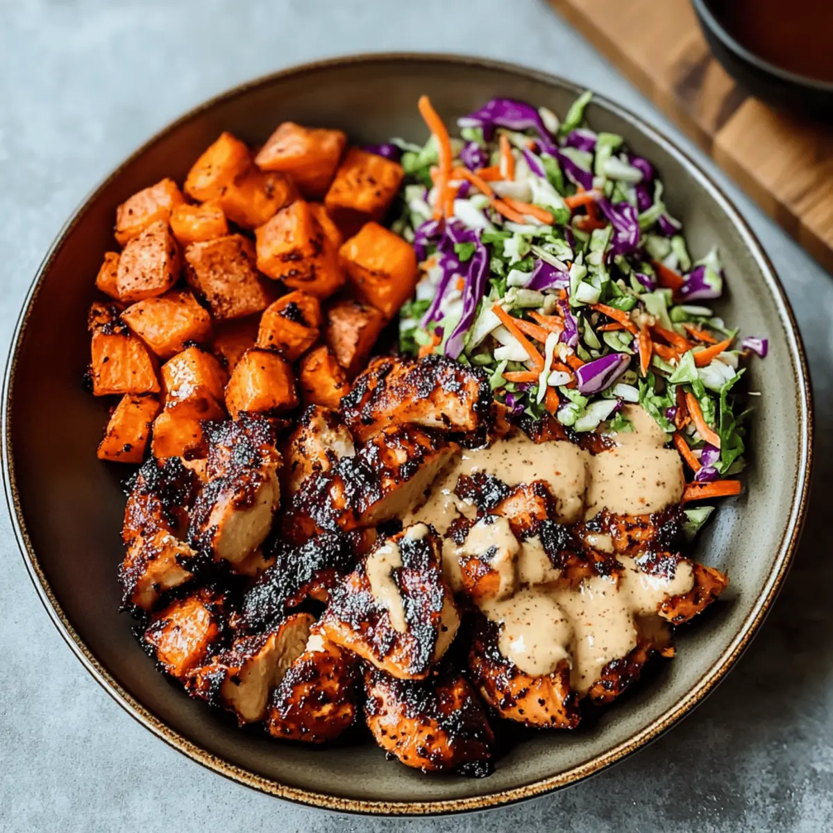Reheating: Reheat the chicken and sweet potatoes in the oven at 350°F (175°C) for about 15-20 minutes until warmed through. Sauté the slaw briefly on the stovetop to refresh its crunch.